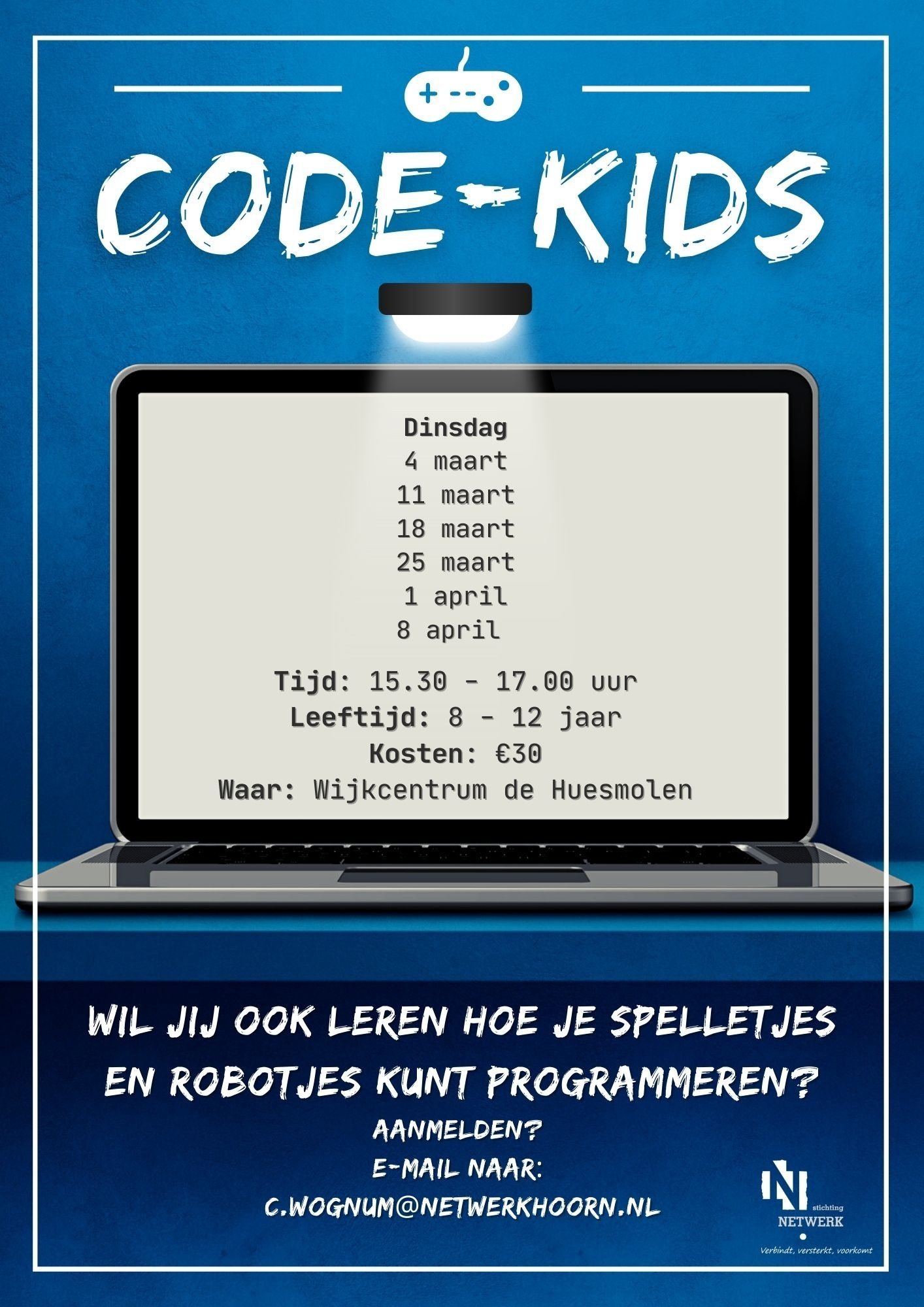 Wil je ook leren hoe je spelletjes en robotjes kunt programmeren? Geef je dan op!