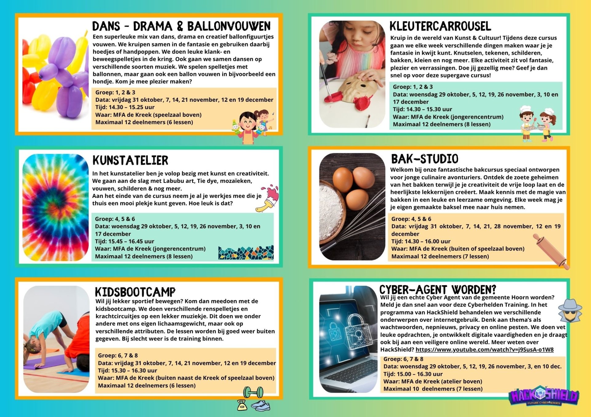 In deze cursus leren kinderen spelenderwijs veilig en verstandig om te gaan met internet. Aan de hand van het kindvriendelijke lesprogramma van HackShield behandelen we wekelijks verschillende onderwerpen over internetgebruik en online gevaren. Denk aan thema’s als wachtwoorden, nepnieuws, privacy en online pesten. Tijdens de lessen voeren de kinderen opdrachten uit om echte Cyber Agents van de gemeente Hoorn te worden. Zo ontwikkelen ze niet alleen belangrijke digitale vaardigheden, maar dragen ze ook bij aan een veiligere online wereld — voor zichzelf en voor anderen!