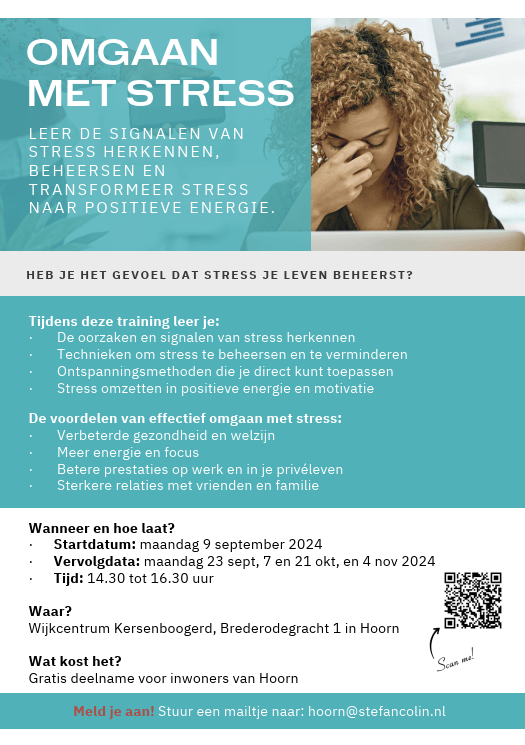 Gratis deelname voor inwoners van Hoorn. Aanmelden via Stefan: hoorn@stefancolin.nl
