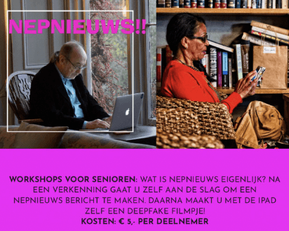 Door het volgen van deze workshop doet u ervaring op met het herkennen en schrijven van nepberichten en met het maken van nepfilmpjes. U maakt alvast kennis met één van de vele toekomstige toepassingen van kunstmatige intelligentie.