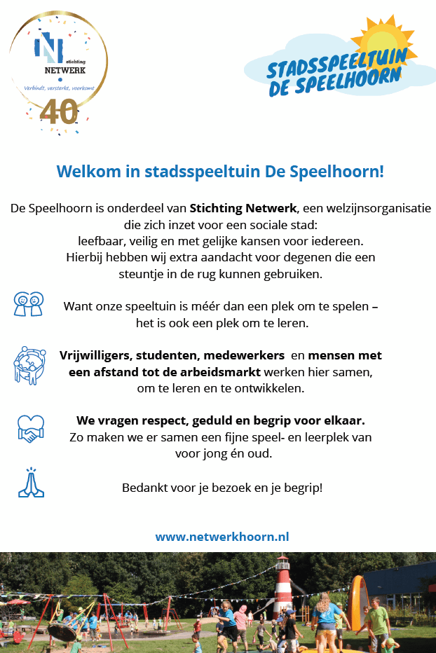 De Speelhoorn volgt het advies van NUSO (www.nuso.nl), hét platform voor speeltuinen, gebaseerd op richtlijnen RIVM en ministerie VWS).